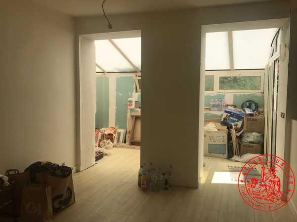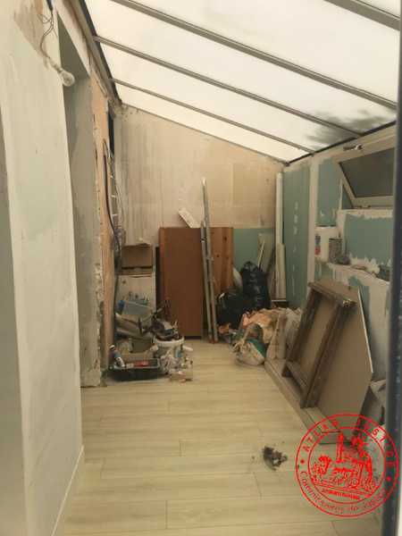 Au 1er étage, depuis le dégagement, côté gauche, accessible par une aire (courette et véranda) de 14 m² environ et comprenant : séjour en entrant avec cuisine semi-ouverte, chambre, salle d’eau avec w.-c. Avec une CAVE - Occupé